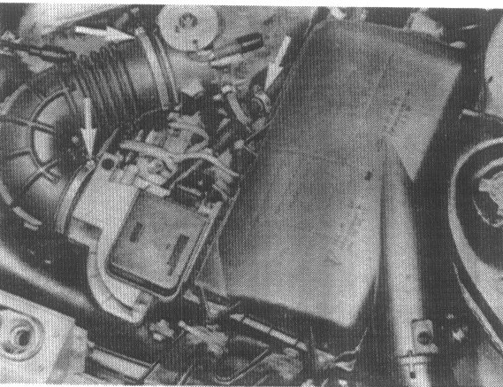 Check all hoses and connections after air flow sensor for tight fit and leaks,