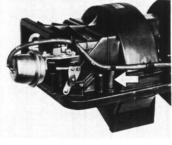 4. Lift fresh air blower slightly. Pull off inner vacuum line.