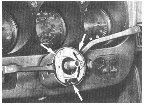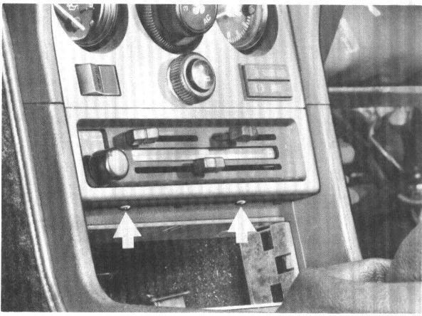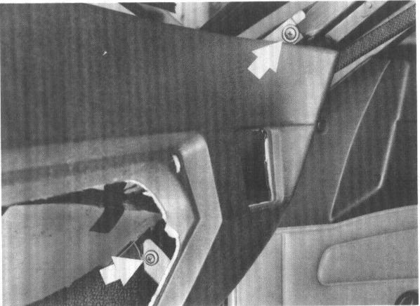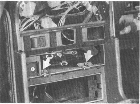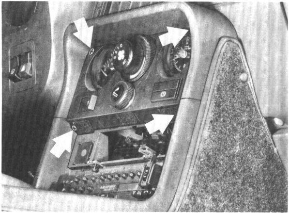 12. Press off radio speaker mask and remove speakers in cars before 1983 models. Remove instrument panel at center.
