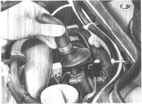 To facilitate removal, loosen upper hose clamp and pull up heater valve.