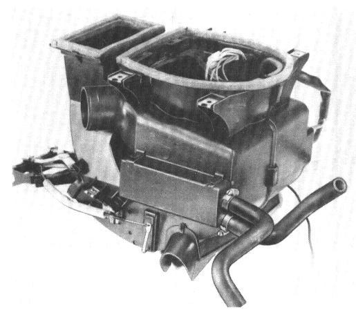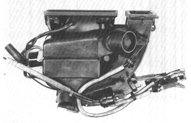 15. Remove instrument panel on heater box assembly. Pull off air hoses and take off instrument panel.