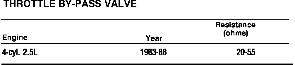 Throttle By-Pass Valve Specifications: