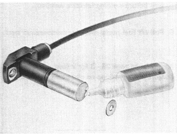 2. If available, a defective sensor could be used as an adjusting tool. Then paste a 0.6 mm thick washer (for clearance) on sensor with a suitable quick-drying glue. The car's sensor could also be used when work is performed carefully. The adhesive surface should then be kept as small as possible or an easily removable glue should be used.