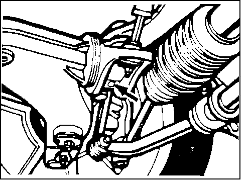 2. To adjust axle height, turn adjusting nuts at bottom of spring on strut. With vehicle resting on ground, turn wheels against lock accordingly to gain access to adjusting nuts. Turn nuts clockwise to increase height or counterclockwise to decrease height. The adjusting range for lowering the vehicle is limited by a stop for the adjusting nut on vehicles with Bilstein spring struts. On vehicles with Boge spring struts, the lowest position has been reached when the adjusting nut turns easily.