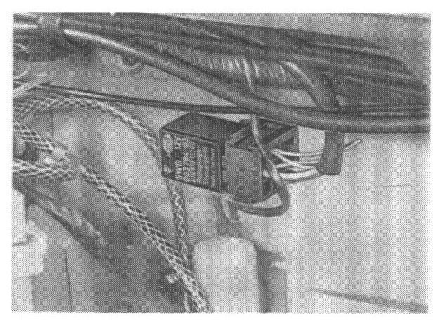 Inside the luggage compartment at the front left above the headlamp wash pump.
