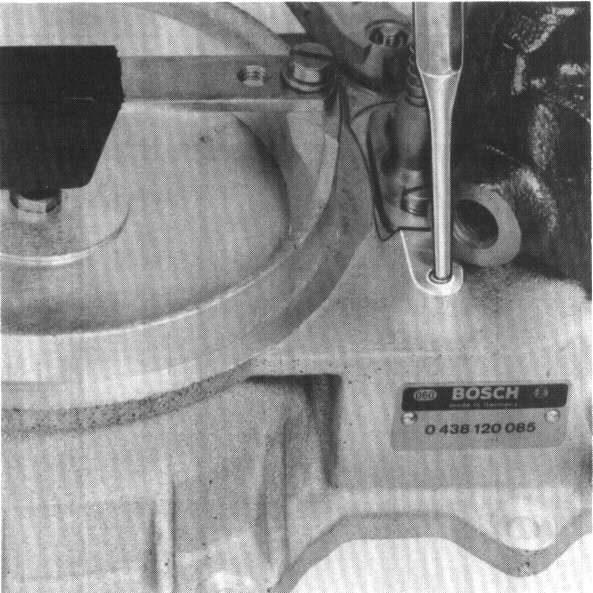 An excessively high air flow sensor plate can be corrected, This is done by driving down the stop spring guidepin accordingly. using a mandrel and a light hammer.