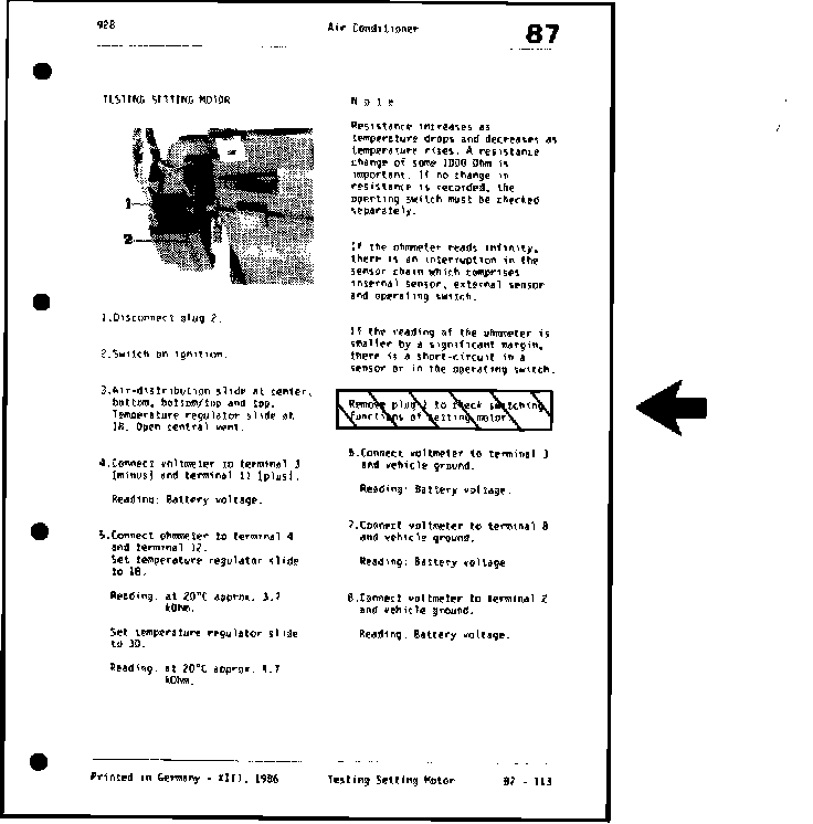 Concern: 928 Workshop Manual: Testing climate control setting motor procedure incorrect.