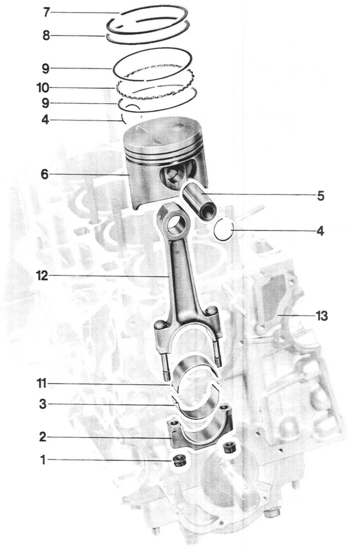 6 Piston 4 Give light coat of oil; position correctly; note tolerance group