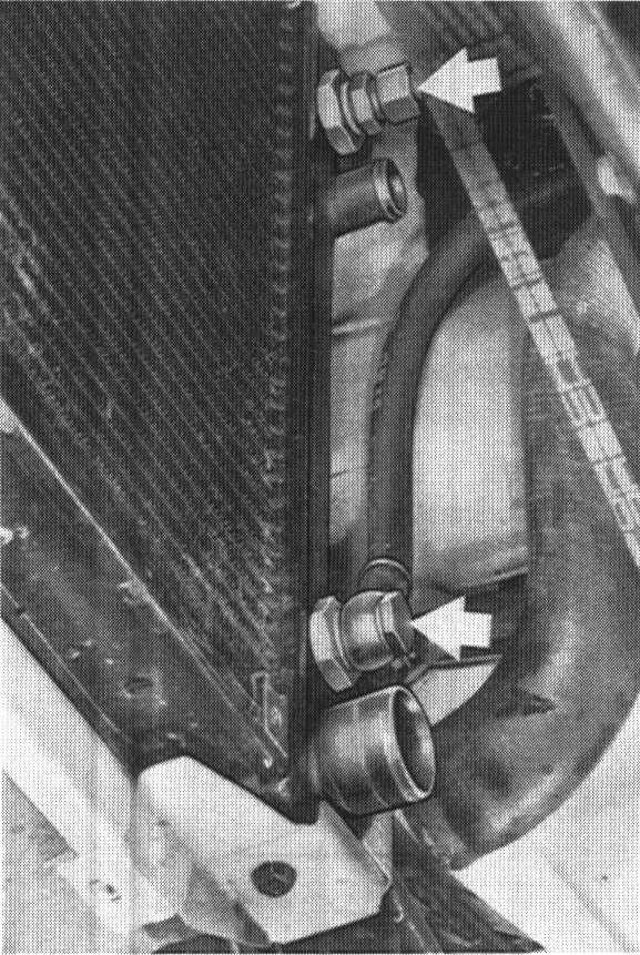10. Disconnect vent hose, tilting radiator back slightly for this purpose.