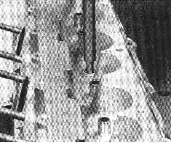 - If appropriate workshop equipment is available, cool valve guides in liquid air and press into cylinder head heated to 190 °C.