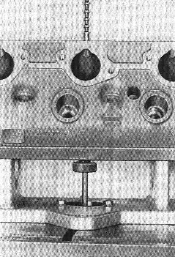 4. Loosen valve guides from the camshaft end with Special Tool 9224 by applying brief knocks and press out rest of guides toward combustion chamber end in a press.