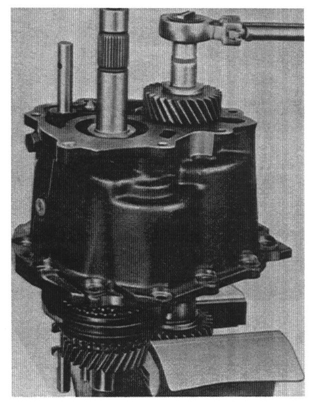 3. Clamp gear carrier in vise and unscrew rear cover mounting bolts.