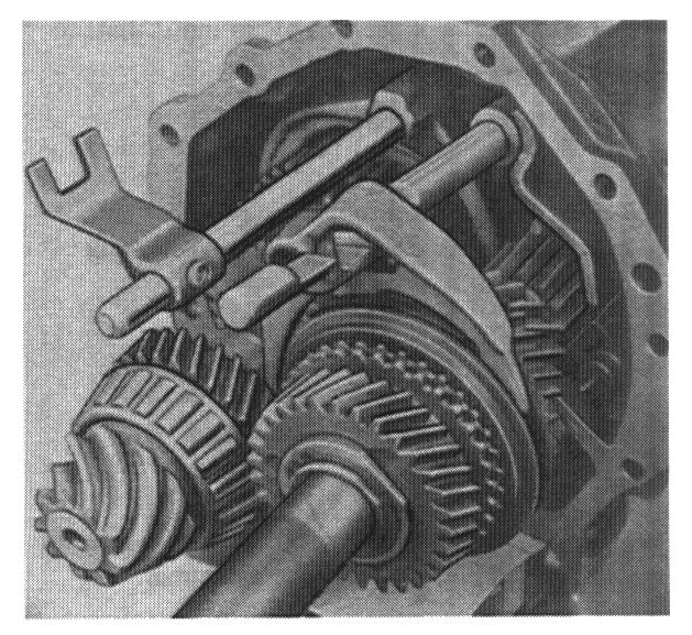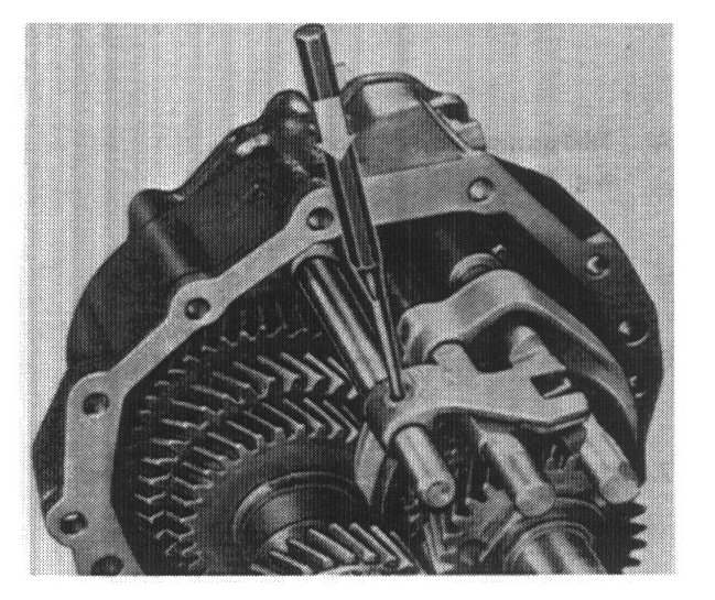 19. Pull drive pinion and input shaft forward slightly. Remove input shaft with 3rd and 4th gear selector fork.