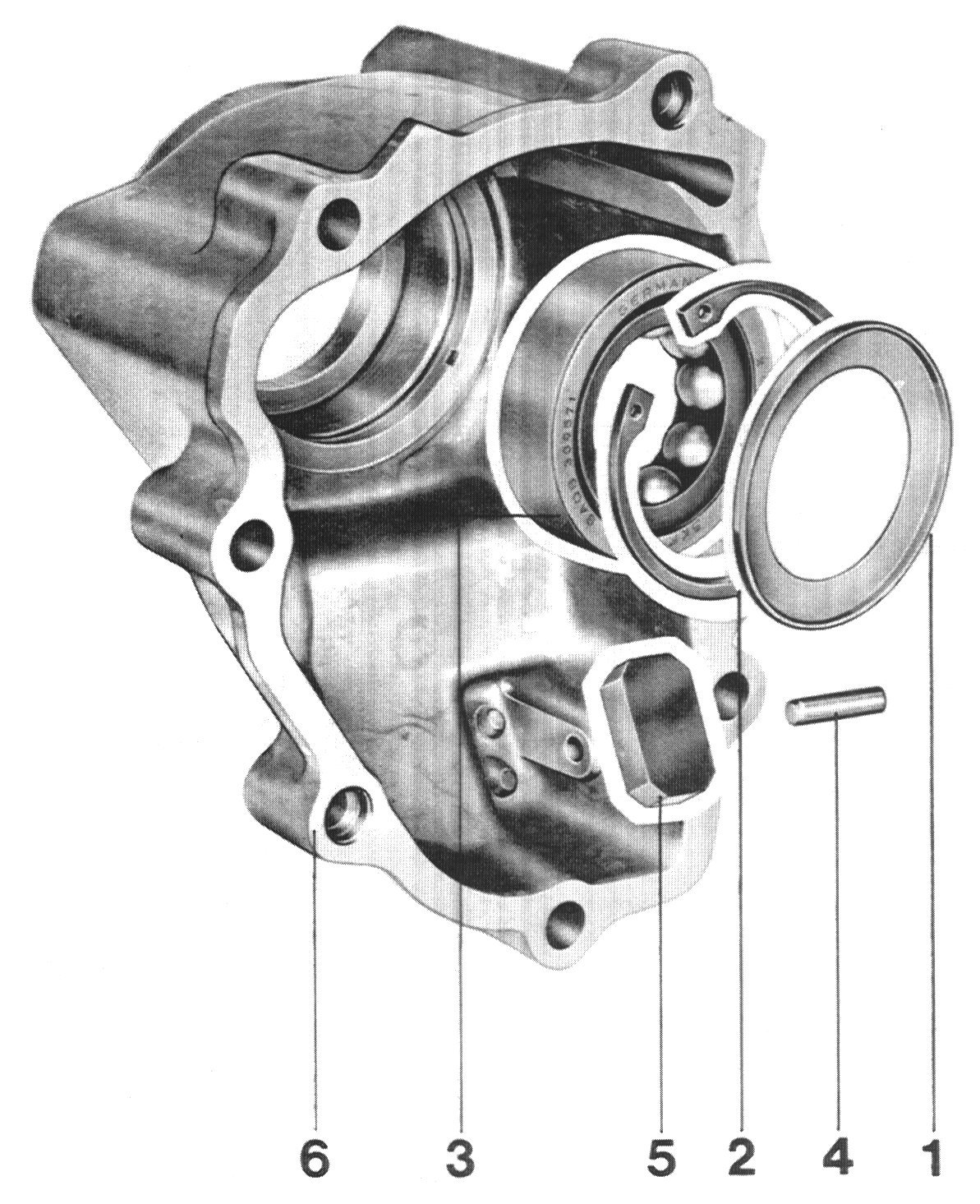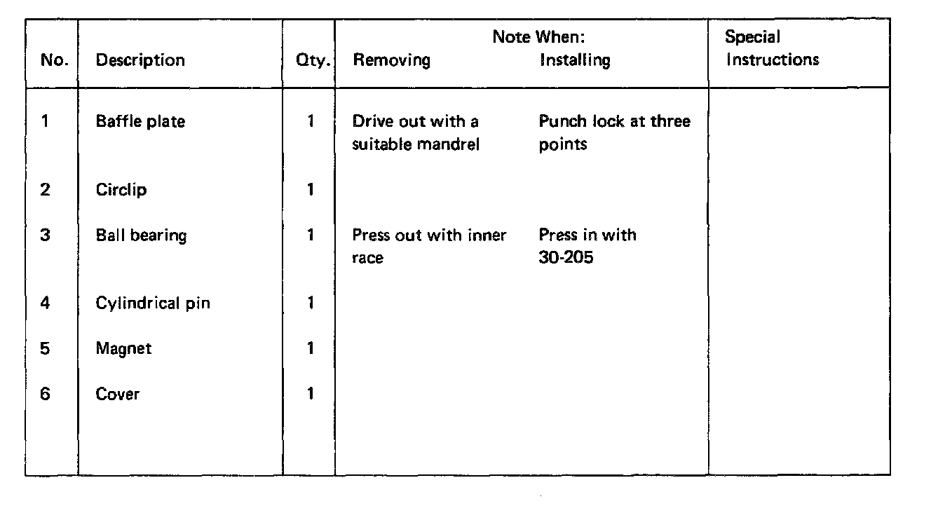 Drive out baffle plate with a suitable mandrel and remove circlip.