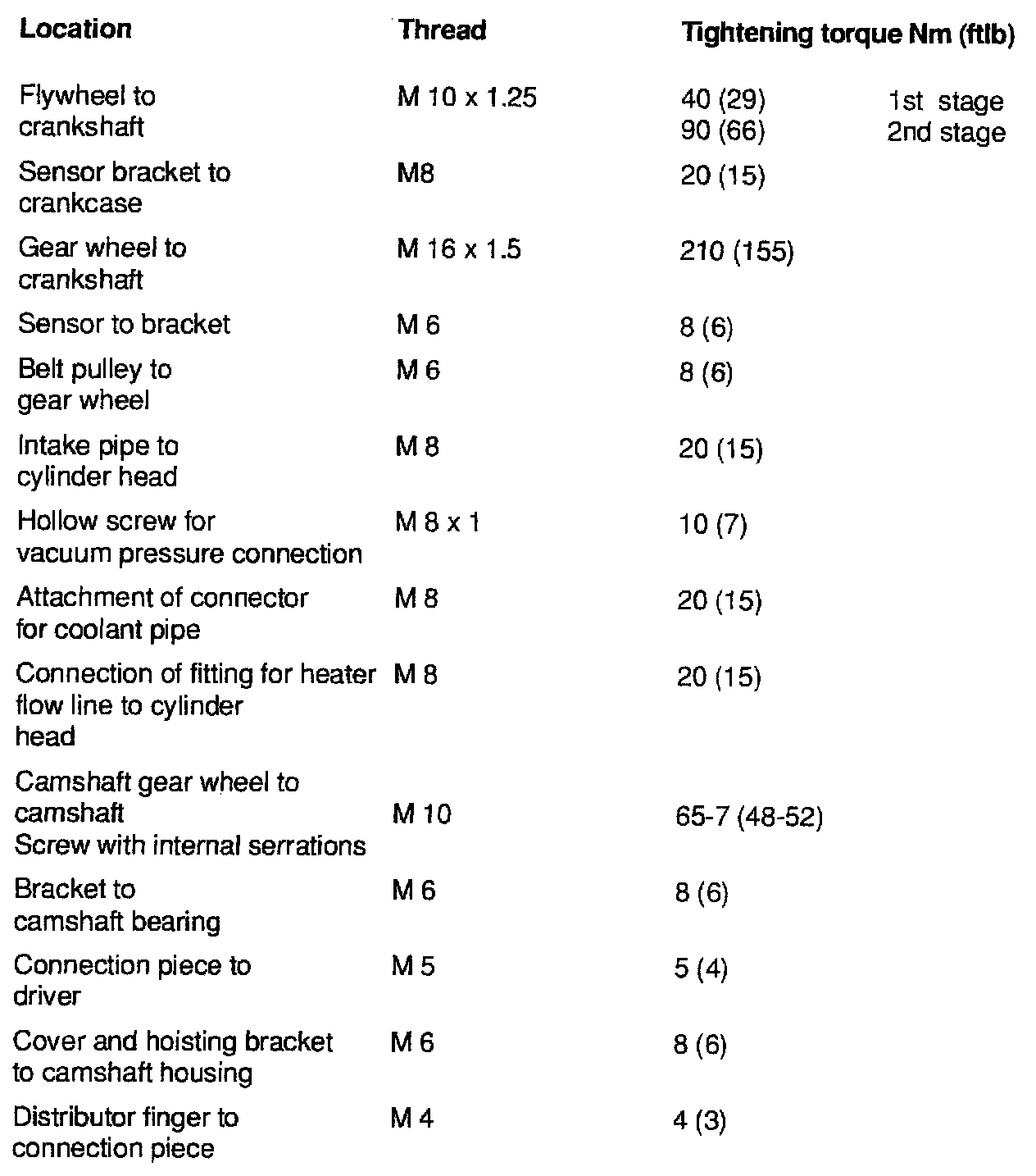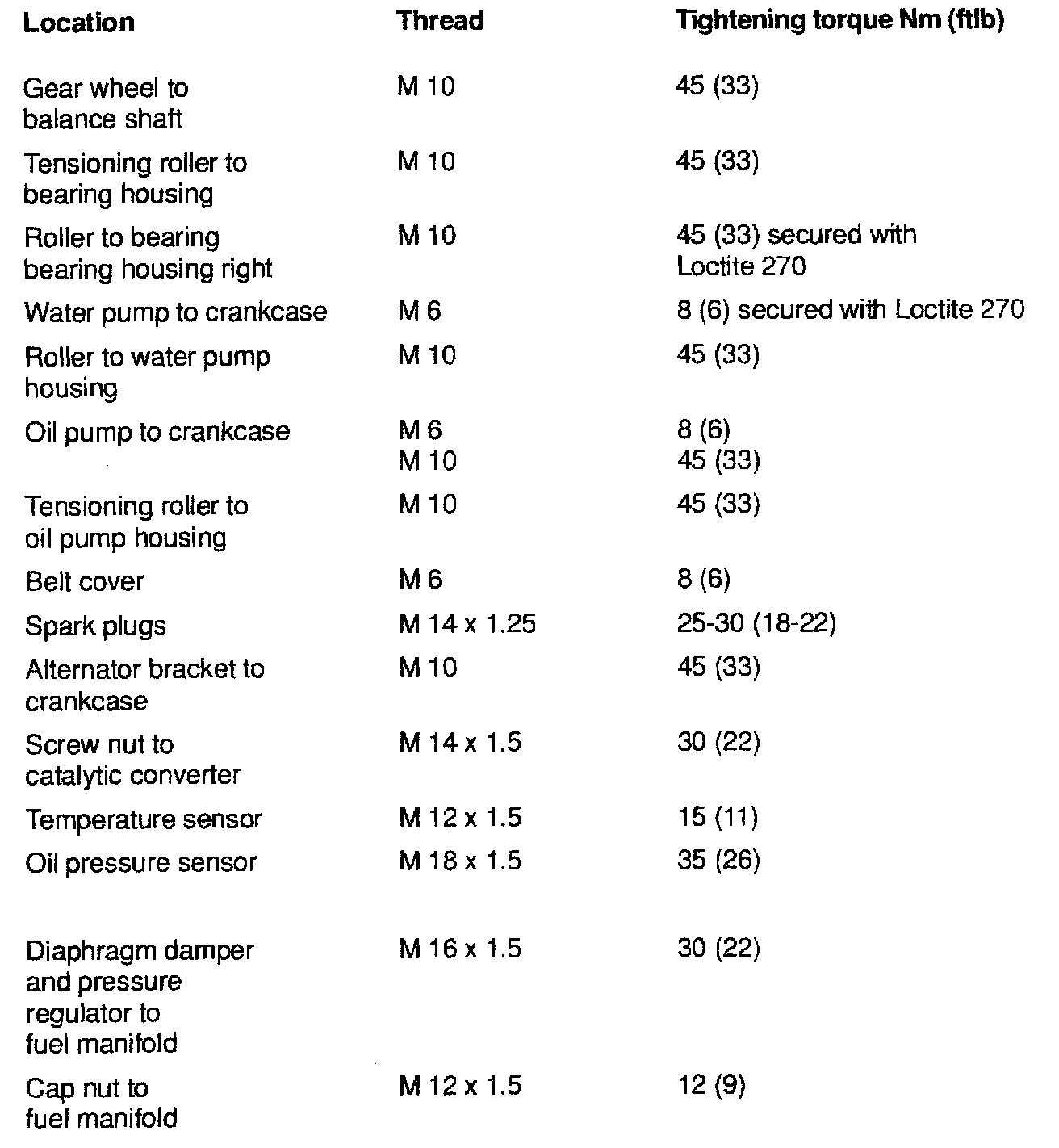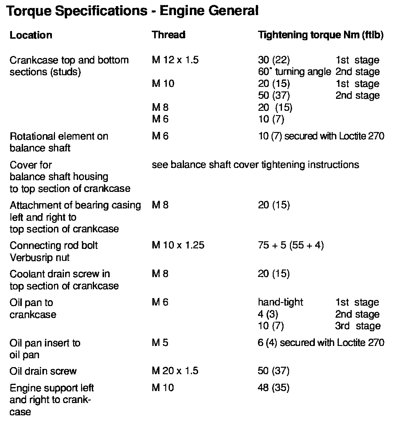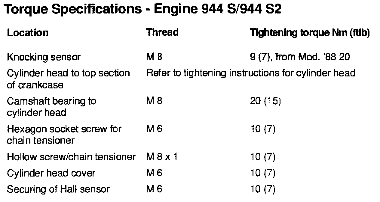 TIGHTENING SPECIFICATIONS