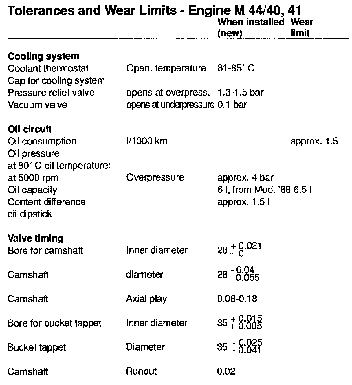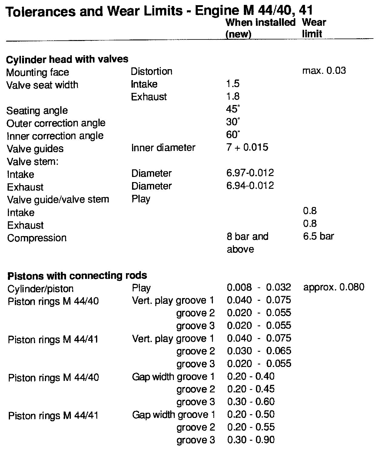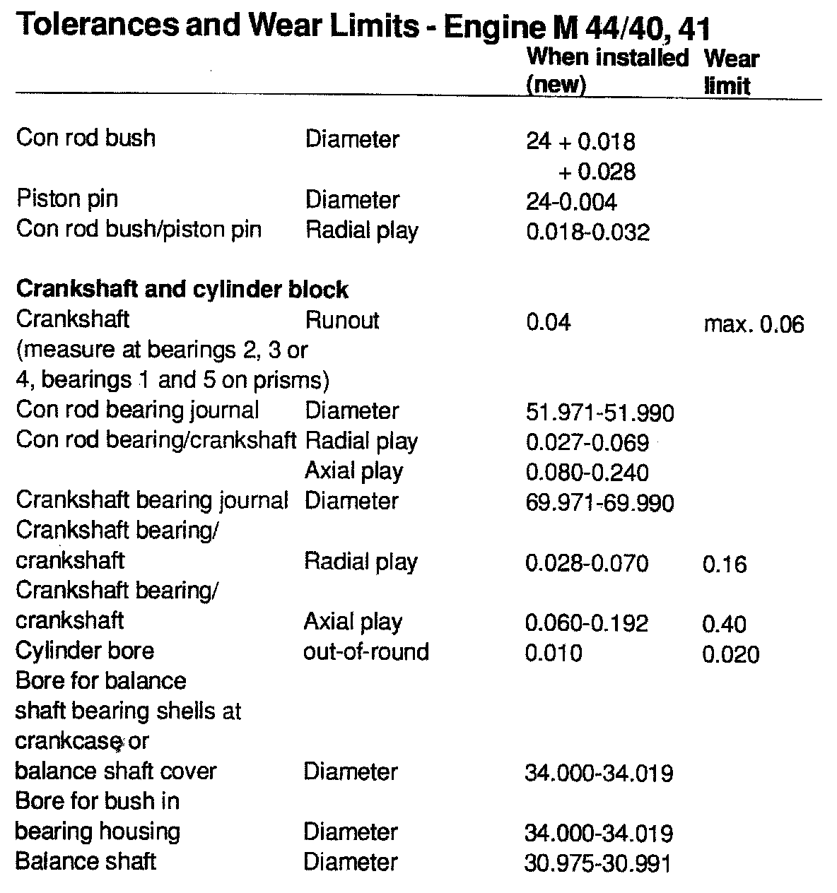 TOLERANCES AND WEAR SPECIFICATIONS