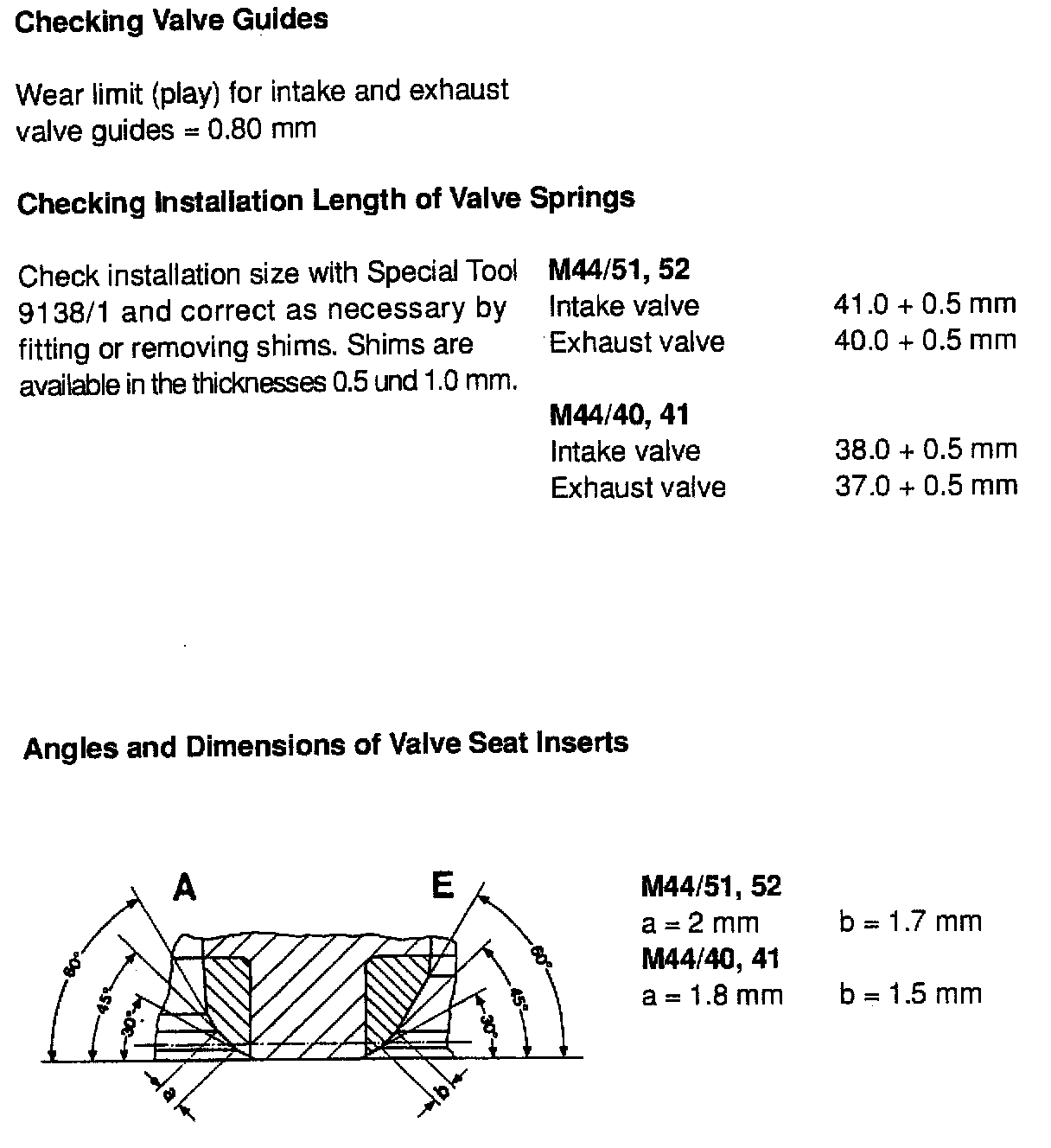 VALVE SPECIFICATIONS