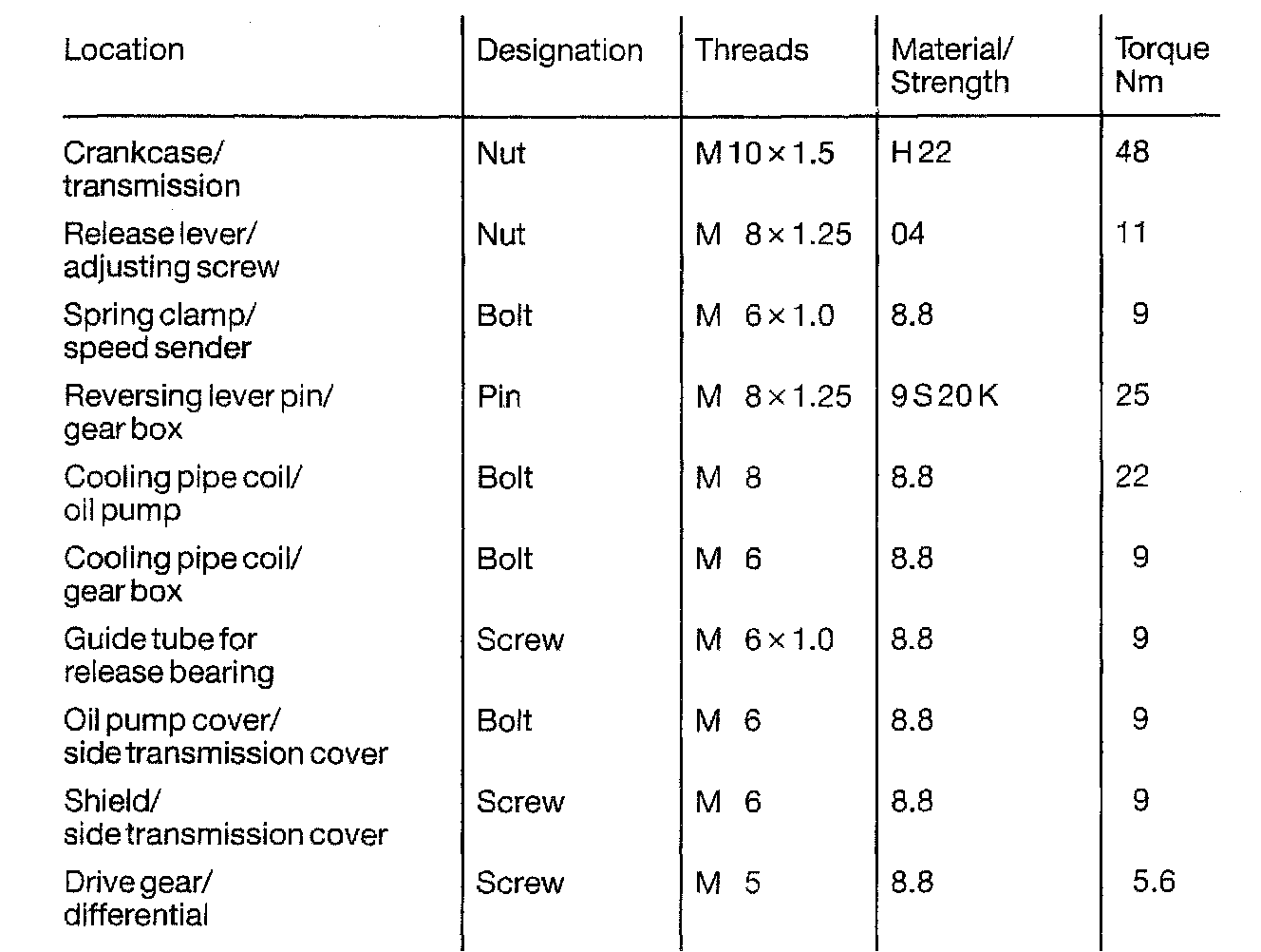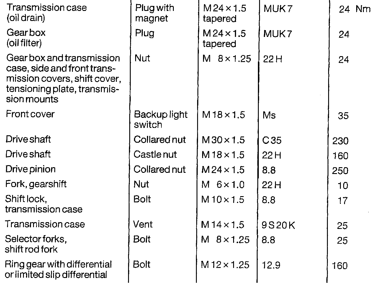 Transmission Tightening Torque Cont.: