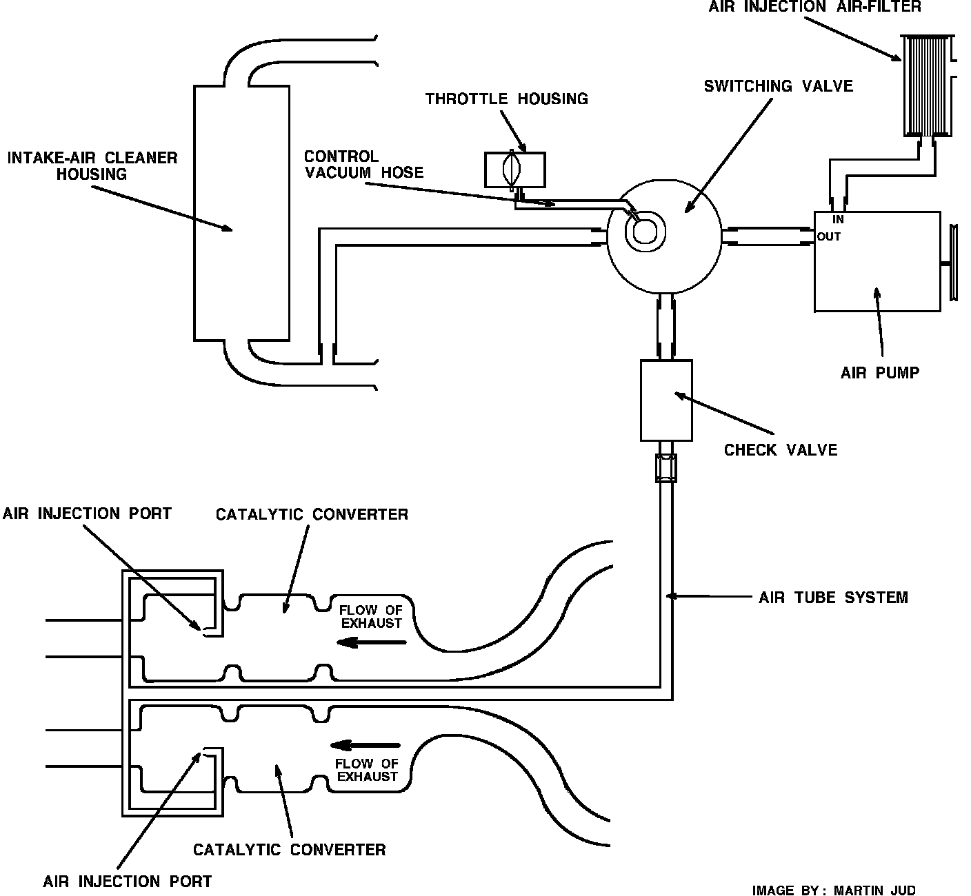 NOTE: In order to operate correctly, the air injection system tubes and hoses must be routed correctly, in good condition and free of internal restriction.
