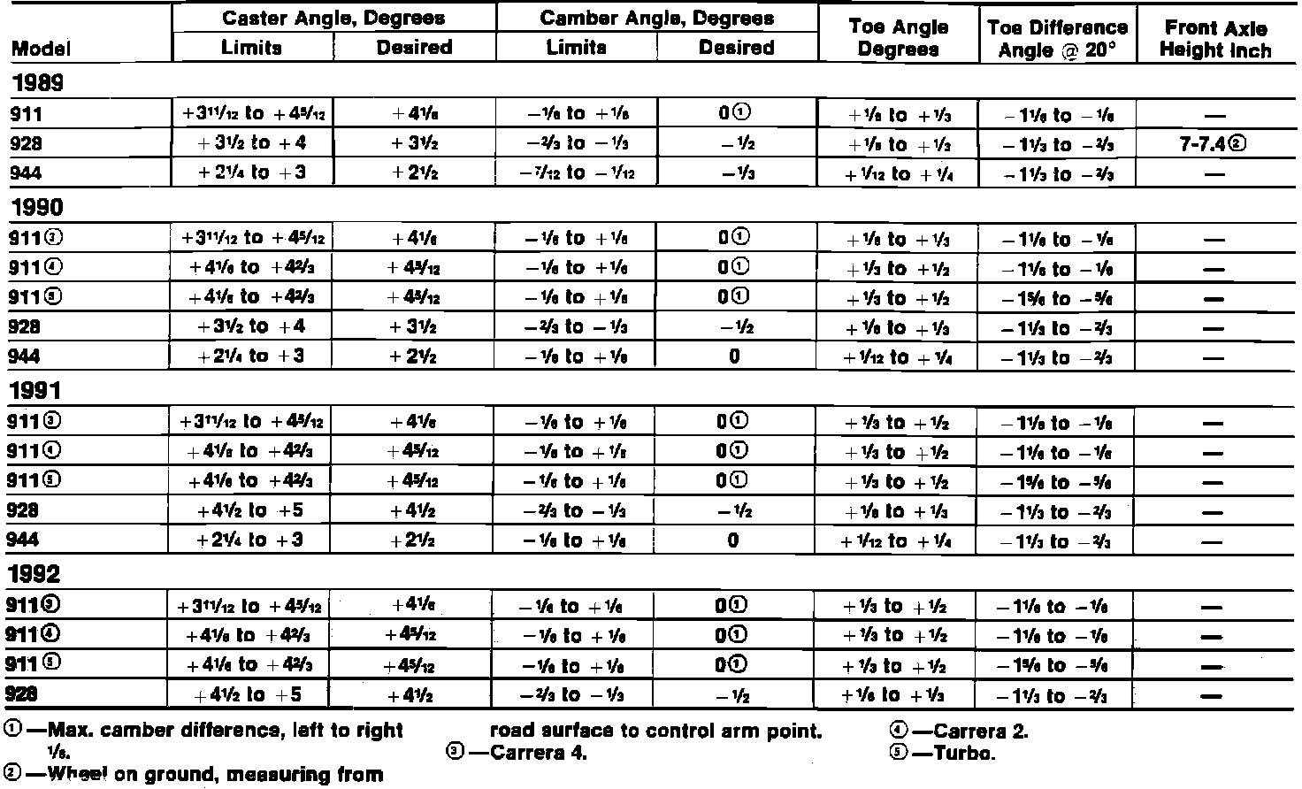 Front Wheel Alignment Specifications: