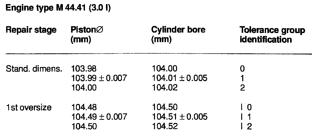 TOLERANCES AND WEAR SPECIFICATIONS