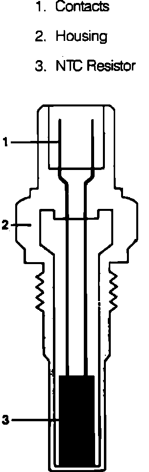 Information concerning the engine operating temperature is supplied by the coolant temperature sensor. The sensor is a NTC type (negative temperature co-efficient) in which the resistance value of the sensor decreases as the temperature of the coolant increases. The resistance value produced by the sensor is used by the DME control unit to correct fuel injector opening time for cold starting and warm-up periods. If the sensor becomes defective (open circuit) the engine may run very rich until the DME control unit has time to implement a substitute value and an emergency run program.