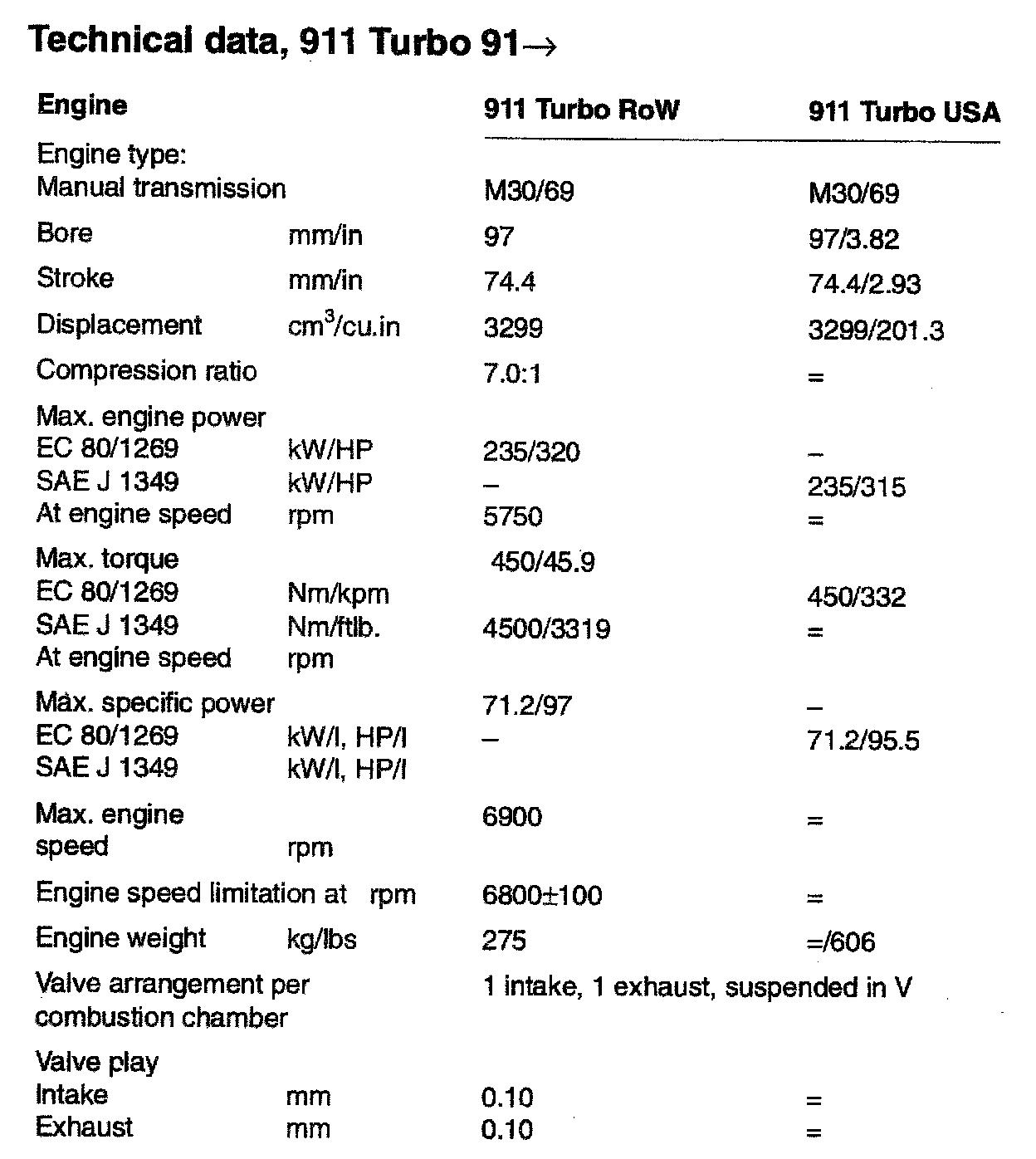 911 Turbo F6-3299cc 3.3L SOHC Turbo