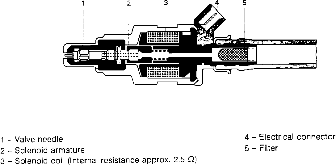 Screwed into return line at fuel distributor.