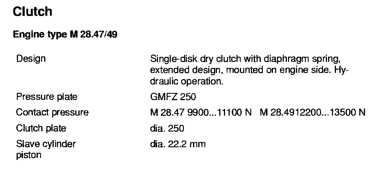 Clutch Technical Data: