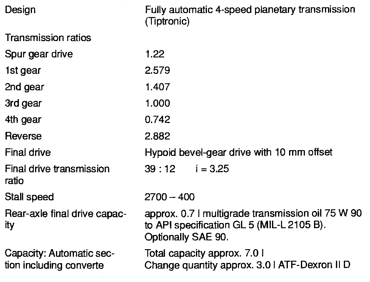 A44 Transmission Technical Data: