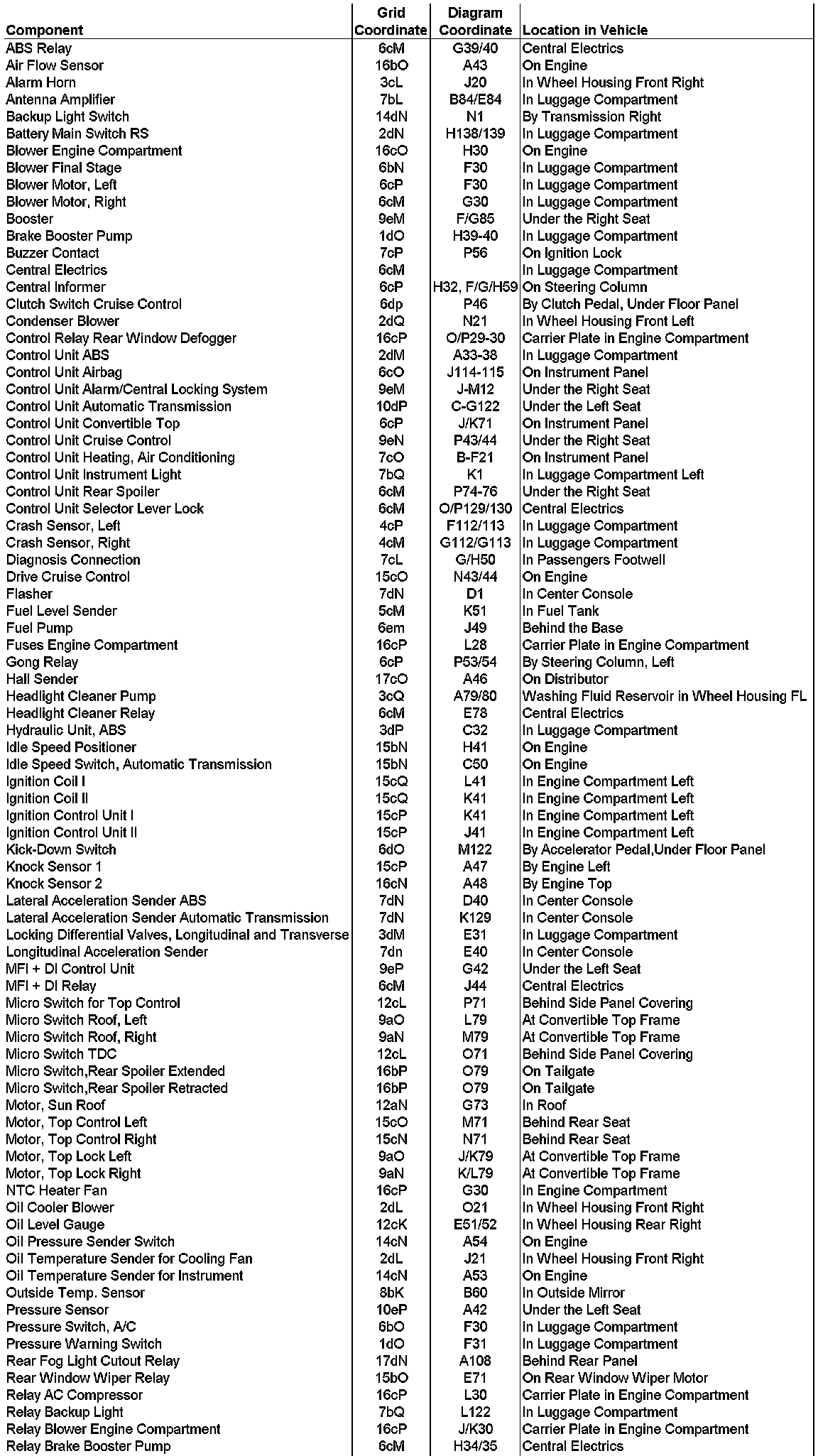 Component List