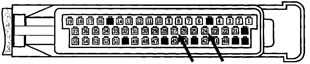 - Connect a voltmeter to terminal 24 (-) and terminal 27 (+) of the control unit plug with the help of test leads.
