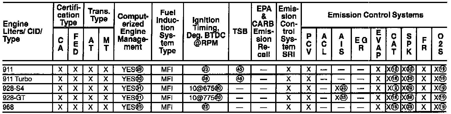 17 - Federal Carrera Turbo 10 degrees ATDC at 1000 RPM, Calif. Carrera Turbo 5 degrees ATDC at 1000 RPM.