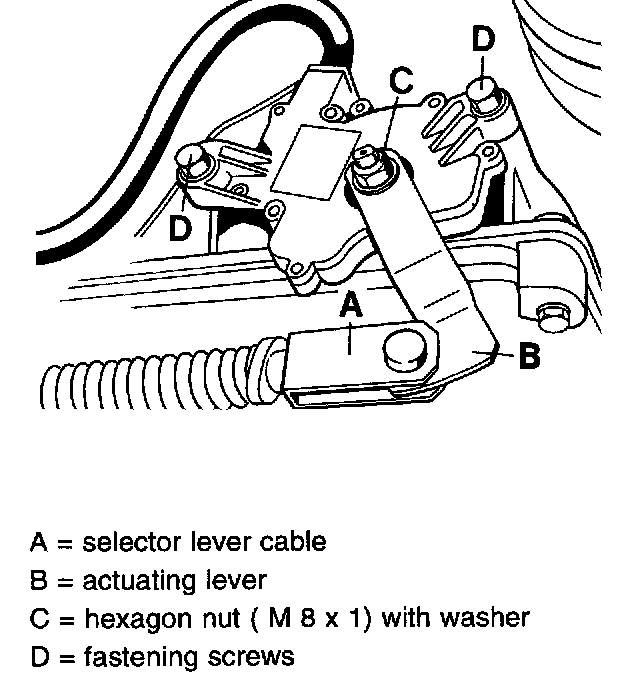 3. Check, and if necessary adjust, setting of selector lever cable. Shift Cable