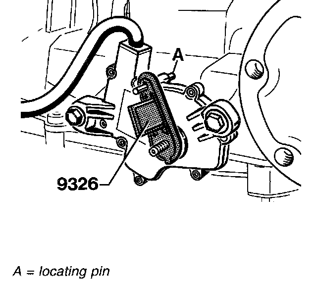- Push pointer of special tool 9326 onto the selector shaft and turn the switch until the locating pin can be pushed into the fixing hole of the switch.