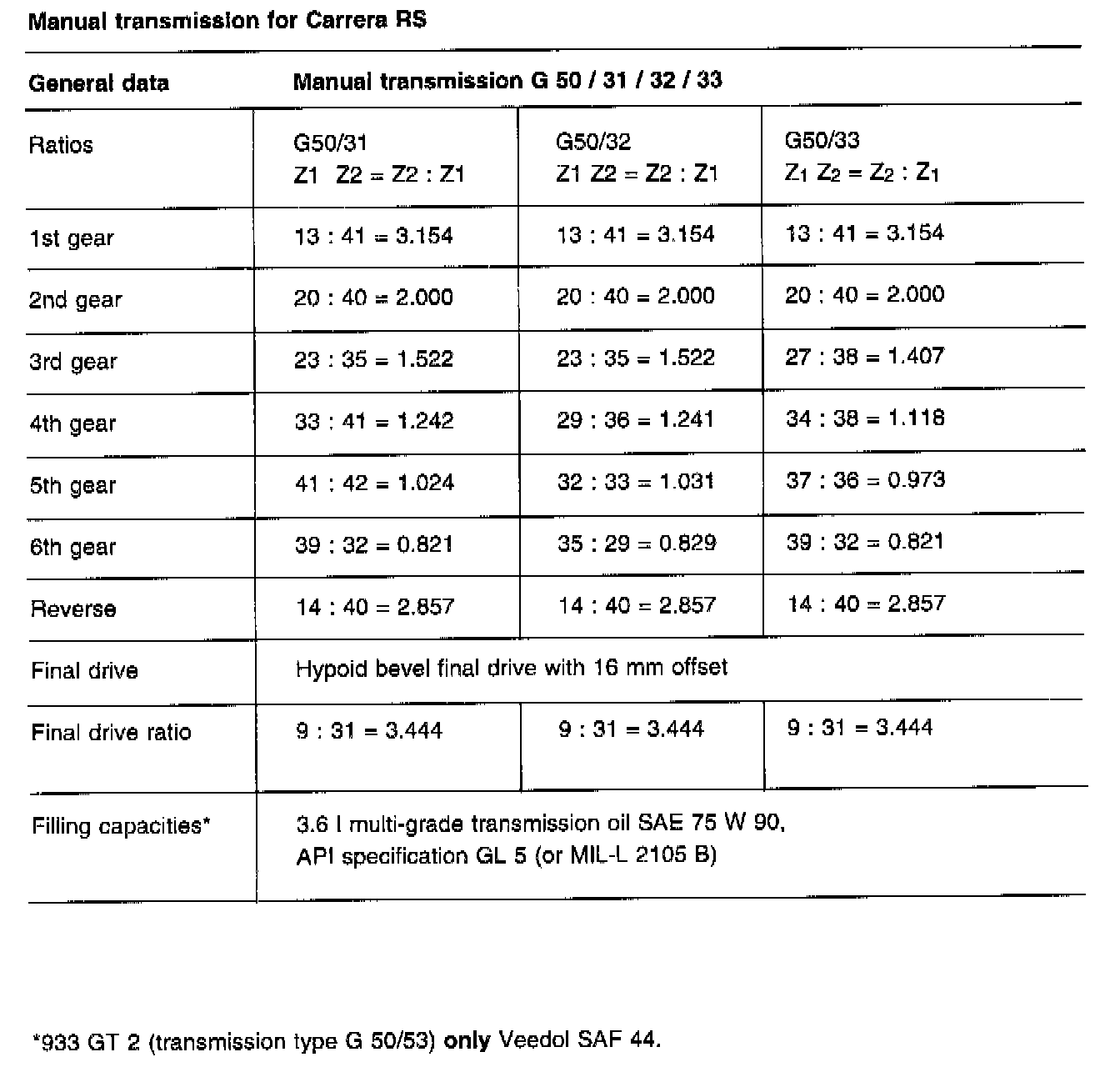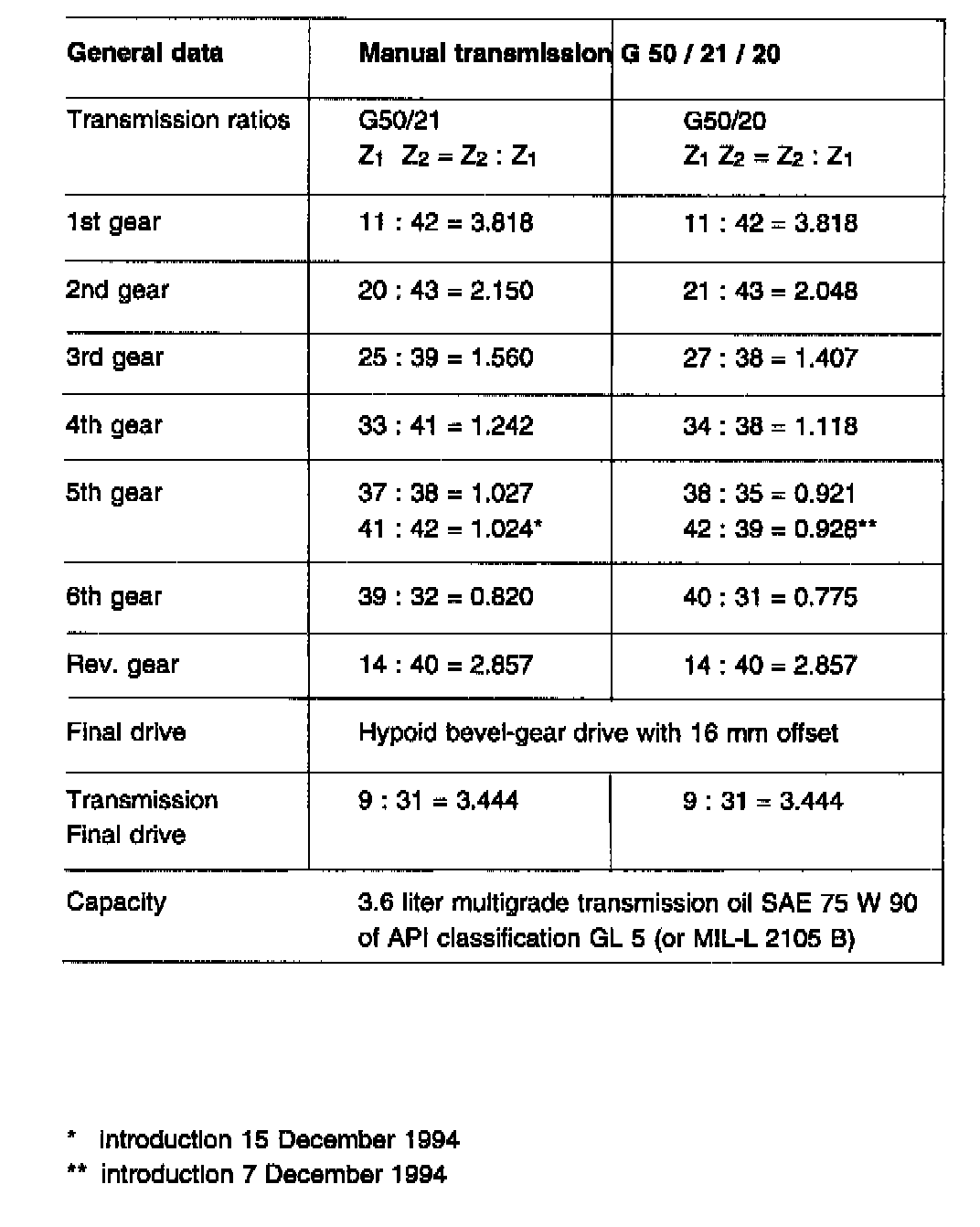 To locate a gear ratio for a specific transaxle, refer to the tables below