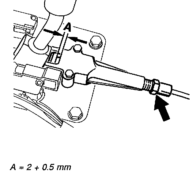5. Adjust bowden cable, turning the cable sleeve on the valve body until the lock slide reaches a setting of 2 + 0.5 mm (refer to illustration).