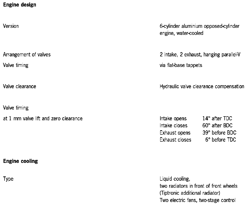 Engine specifications of the 911 Carrera 2/4 (996) as of model'00
