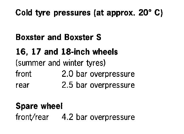The stated air pressures are minimum pressures and must never be fallen below, since in addition to the unfavorable driving performance, this would bring about a risk of serious tire damage.