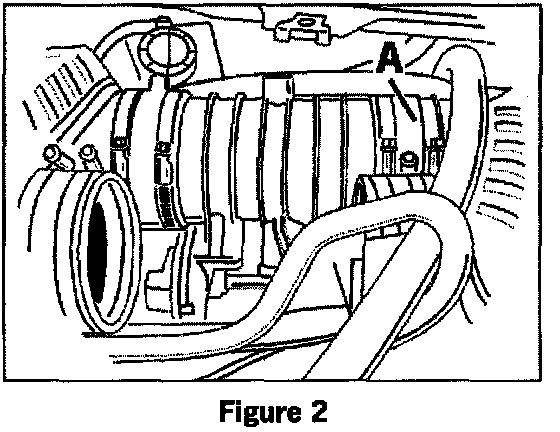 A. On Engine types M96/22 and /21 only (Egas)7 Loosen the throttle body/distribution pipe with both rubber sleeves and remove (See figure 2). Remove right-hand rubber sleeve (Item A) from the tuning pipe.