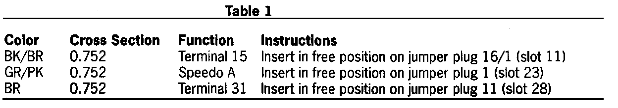 2.0 Plug the relay socket into any free slot in the relay carrier 1. Insert the branches of the electrical wiring harness into the associated jumper plug of the relay carrier according to the table 1. Make sure the connector is inserted in the bridge connector that has a jumper connection.