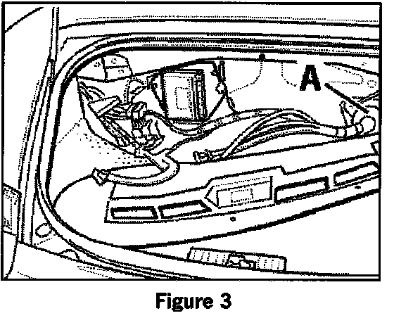 2.3 Using a 4.5 mm drill bit, drill a hole through the grommet (Figure 3, item A) in the rear luggage compartment. The hold is drilled in the 12 o-clock position.