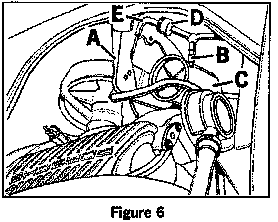 4.5 Route the vacuum hose under the intake manifold from the rubber sleeve up to the vacuum an Cut the vacuum hose at the vacuum tank. See figure 5 for vacuum system lay out.