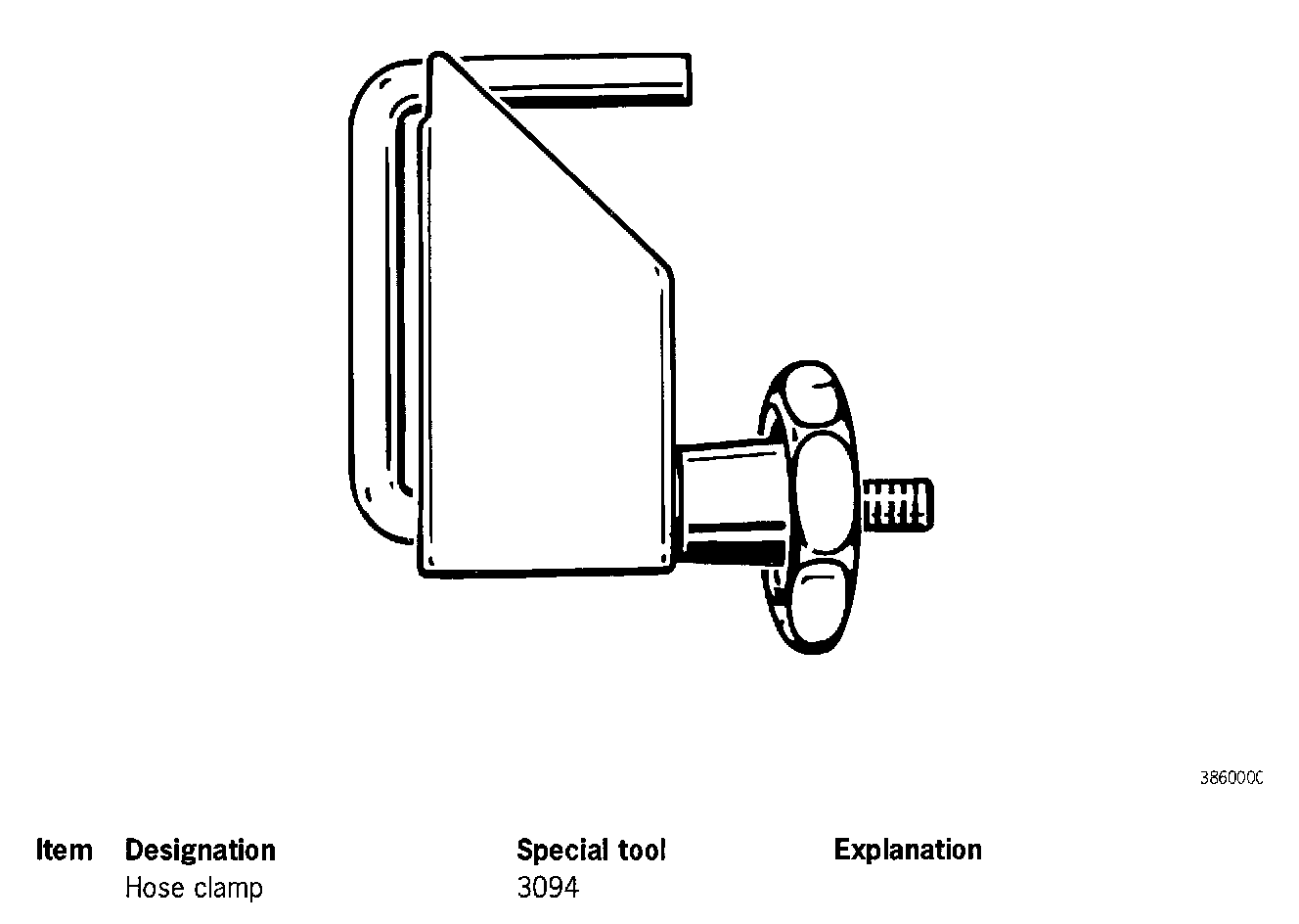 2. Clamp shut coolant hoses (flow and return sides) with special tool 3094.