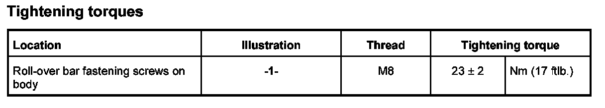 - To make taking measurements easier during installation of the roll-over bar, the number of shim plates -2, 3- should be kept the same.