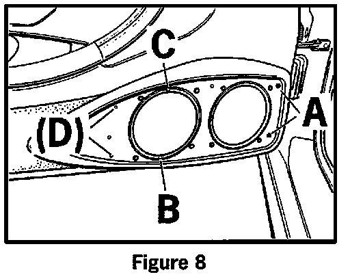 4.3 Insert the sheetmetal screw 4.2 x 70 on the bottom of the rear loudspeaker cut-out (Figure 8, Item B) and tighten hand tight only.