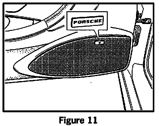 5.7 Clean bonding surface (Figure 11, inset). Let dry, then stick on the PORSCHE logo (Do this at room temperature).