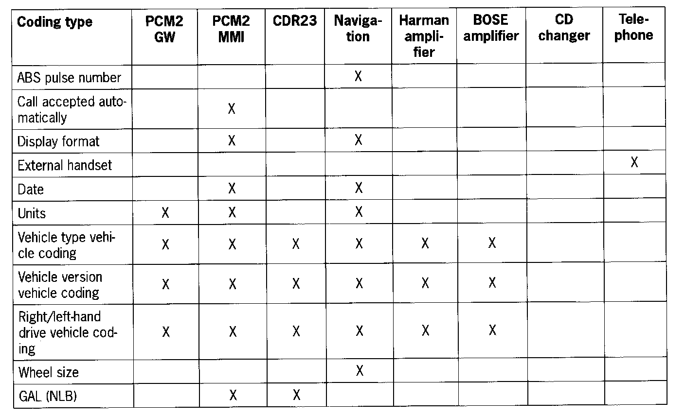 drive vehicle coding The PCM2 MMI corresponding to the vehicle version can be coded using this coding menu item.