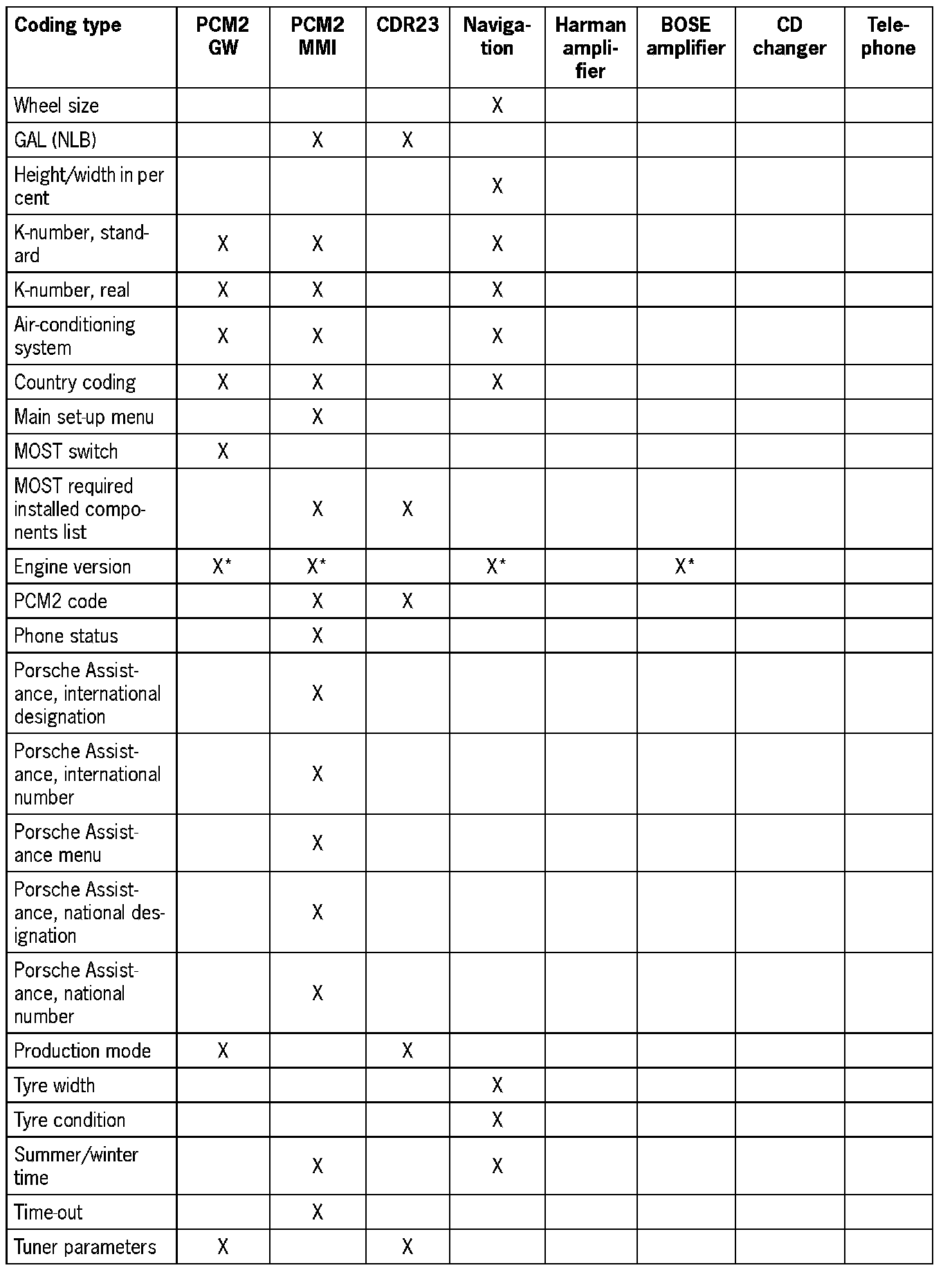 Coding Table