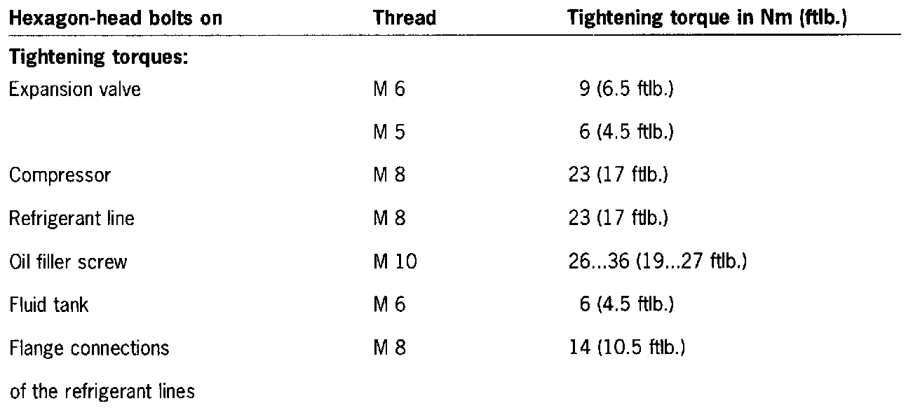 Refrigerant oil in the compressor 195 +/- 15 cu.cm ND 8